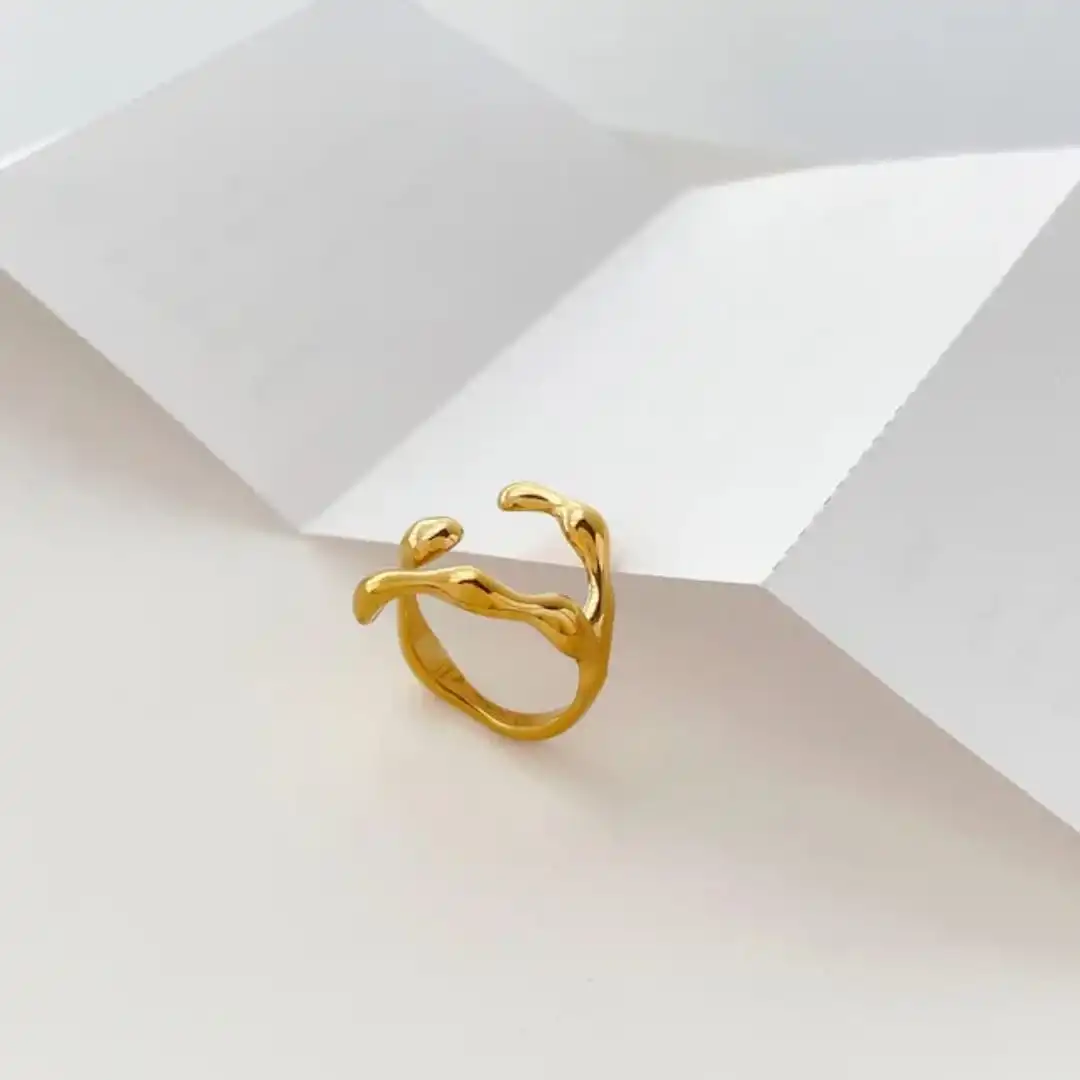 Stylish Gold Plated Open Ring Design for Women on Finger